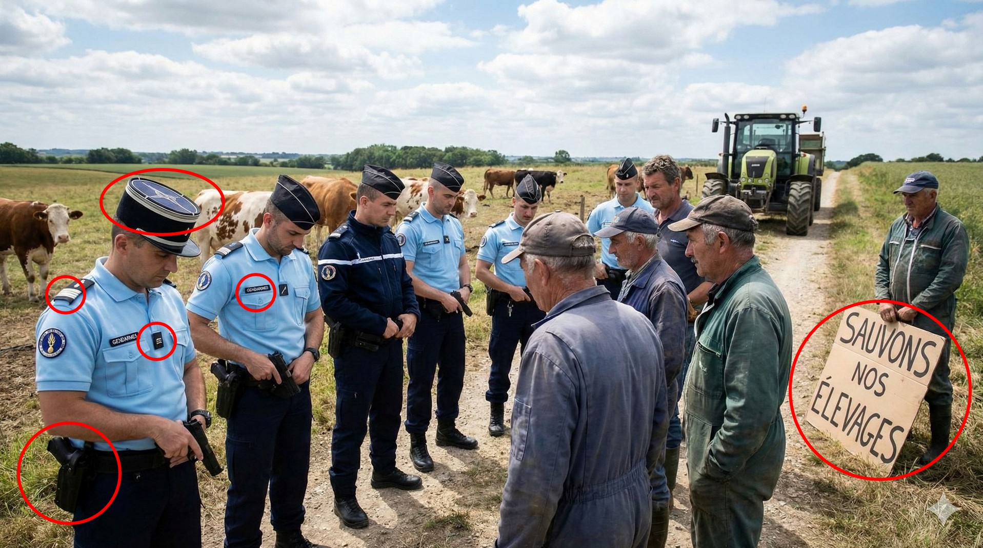 L’information selon laquelle « sept gendarmes mobiles auraient refusé l’affrontement avec les paysans » n’a été confirmée par aucun média reconnu. Elle n’a circulé que dans des sphères idéologiques très marquées, souvent peu regardantes sur la vérification des faits. Pourtant, cette affirmation a trouvé un puissant renfort visuel : une image choc, censée incarner la preuve ultime.